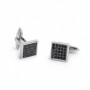 Gemelli della collezione Marlù Man da uomo. Colore: argento e nero. I gemelli sono quadrati in acciaio inossidabile 316L con trattamento canna di fucile con una forma impreziositi da cristalli neri. E' presente sul lato il logo Marlù. Chiusura a torpedo.