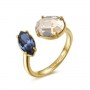 Anello in ottone in pvd oro e cristalli colorati Swarovski Elements,golden shadow e denim blue- MISURA: 10 (regolabile +2 misure ; - 2 misure)