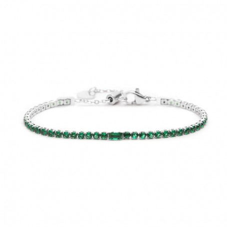Bracciale con catena tennis con cubic zirconia 2,50 mm, con al centro un cubic zirconia taglio baguette. Lunghezza totale 19 cm regolabile tramite cursore da 19 cm a 15 cm. Chiusura a moschettone. Marlù logo tag presente all' estremità.