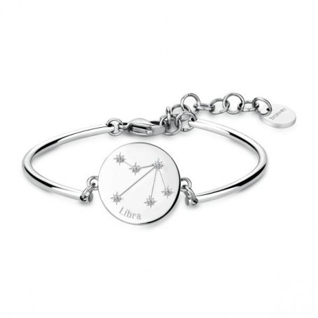 Bracciale in acciaio 316L con piastrina incisa segno zodiacale e cristalli Swarovski Elements.
